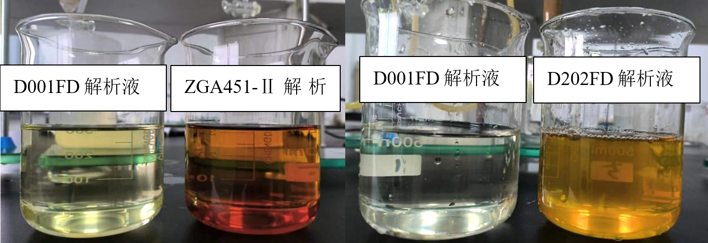 1、树脂:D001FD,ZGA451-Ⅱ,D202FD,树脂装填量60ml。